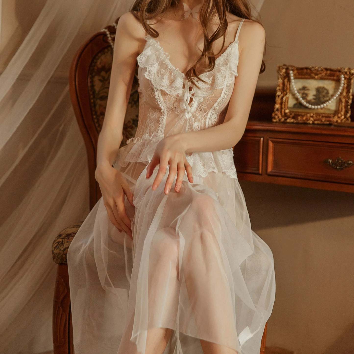 Women Lace Cardigan Camisole Pajamas